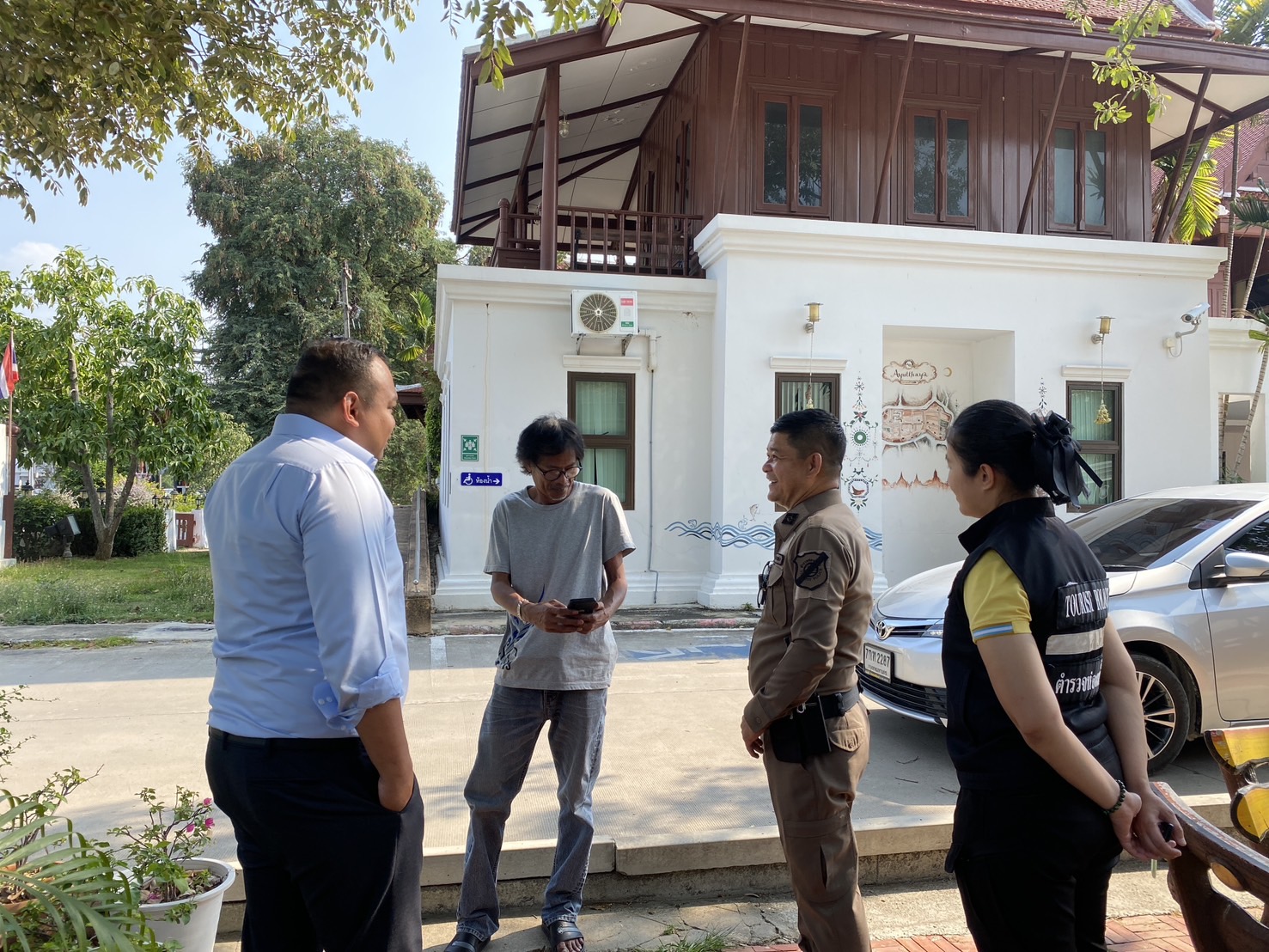 ต่อมาวันนี้ (3 มี.ค.68) เวลา 15.00น. เจ้าหน้าที่ส.ทท.1ฯ อำนวยความสะดวกติดต่อพนักงานขับรถ Grab car คันดังกล่าว ทราบชื่อ นายธราศรัย สุขสมเนตร เบอร์ติดต่อ 081-852-4253 แสดงตนเป็นผู้ขับขี่รถยนต์ยี่ห้อ Toyota Corola Altis สีบรอนด์เงิน ทะเบียน 7กท 2287 กทม. มายังสถานีตำรวจท่องเที่ยวพระนครศรีอยุธยา เพื่อตรวจสอบทรัพย์สินภายในรถ ปรากฎไม่พบโทรศัพท์มือถือของนักท่องเที่ยว ภายหลังนายธราศรัยฯ ได้รับแจ้งจากนักท่องเที่ยวว่านักท่องเที่ยวได้พบโทรศัพท์เครื่องดังกล่าวแล้ว จึงแจ้งมาให้เจ้าหน้าที่ทราบ พร้อมกล่าวคำขอบคุณที่ให้การช่วยเหลือ