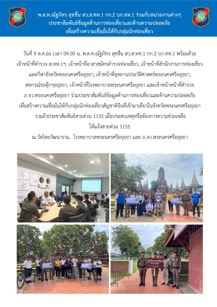 วันที่ 23 ตุลาคม 2566 ดูแลความปลอดภัยและอำนวยความสะดวกให้แก่นักท่องเที่ยว