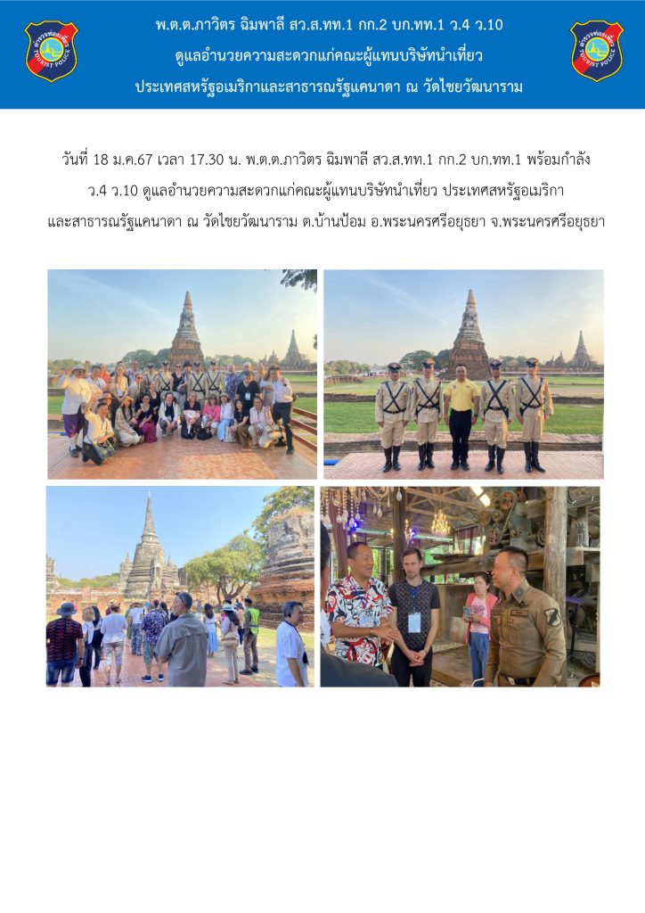 วันที่ 18 ม.ค.67 เวลา 17.30 น. ดูแลอำนวยความสะดวกแก่คณะผู้แทนบริษัทนำเที่ยว