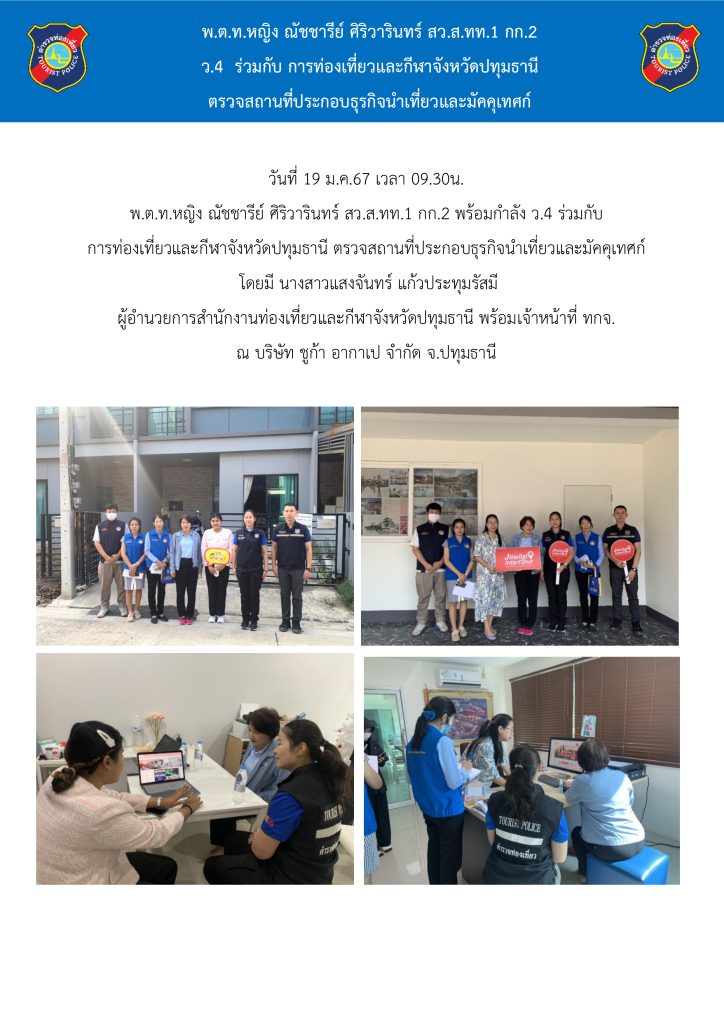 วันที่ 19 ม.ค.67 เวลา 09.30 น. ตรวจสถานที่ประกอบธุรกิจนำเที่ยวและมัคคุเทศก์
