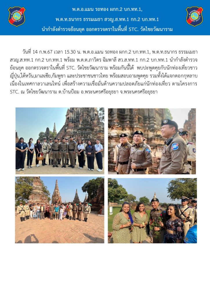 วันที่ 14 ก.พ.67 เวลา 15.30 น. ออกตรวจตราในพื้นที่ STC. วัดไชยวัฒนาราม