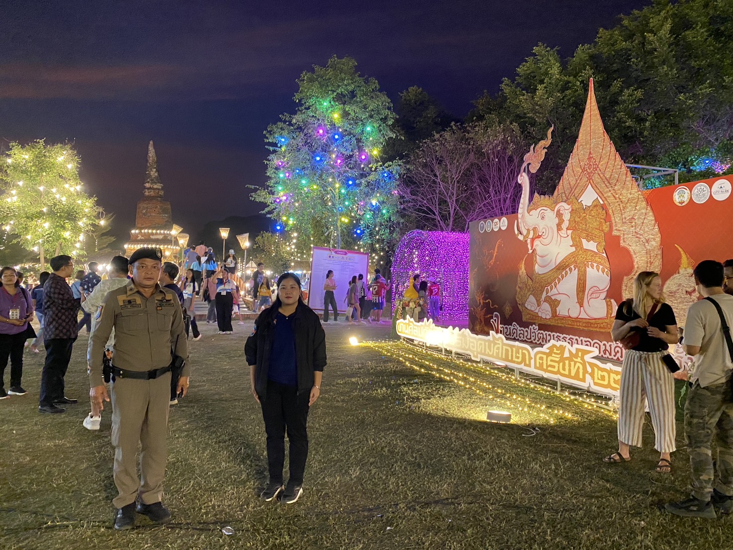 ร.ต.ต.ภาคิณ ศรีสังข์งาม ปฏิบัติหน้าที่ร้อยเวร พร้อมกำลัง ว.4 ดูแลอำนวยความสะดวกป้องกันเหตุให้แก่ประชาชนและนักท่องเที่ยวภายใน “งานศิลปวัฒนธรรมอุดมศึกษาครั้งที่ 23 ยอยศสิปปศิลป์ นฤตยาพิพัฒน์ 12 ทศวรรษ ราชภัฏอยุธยา”