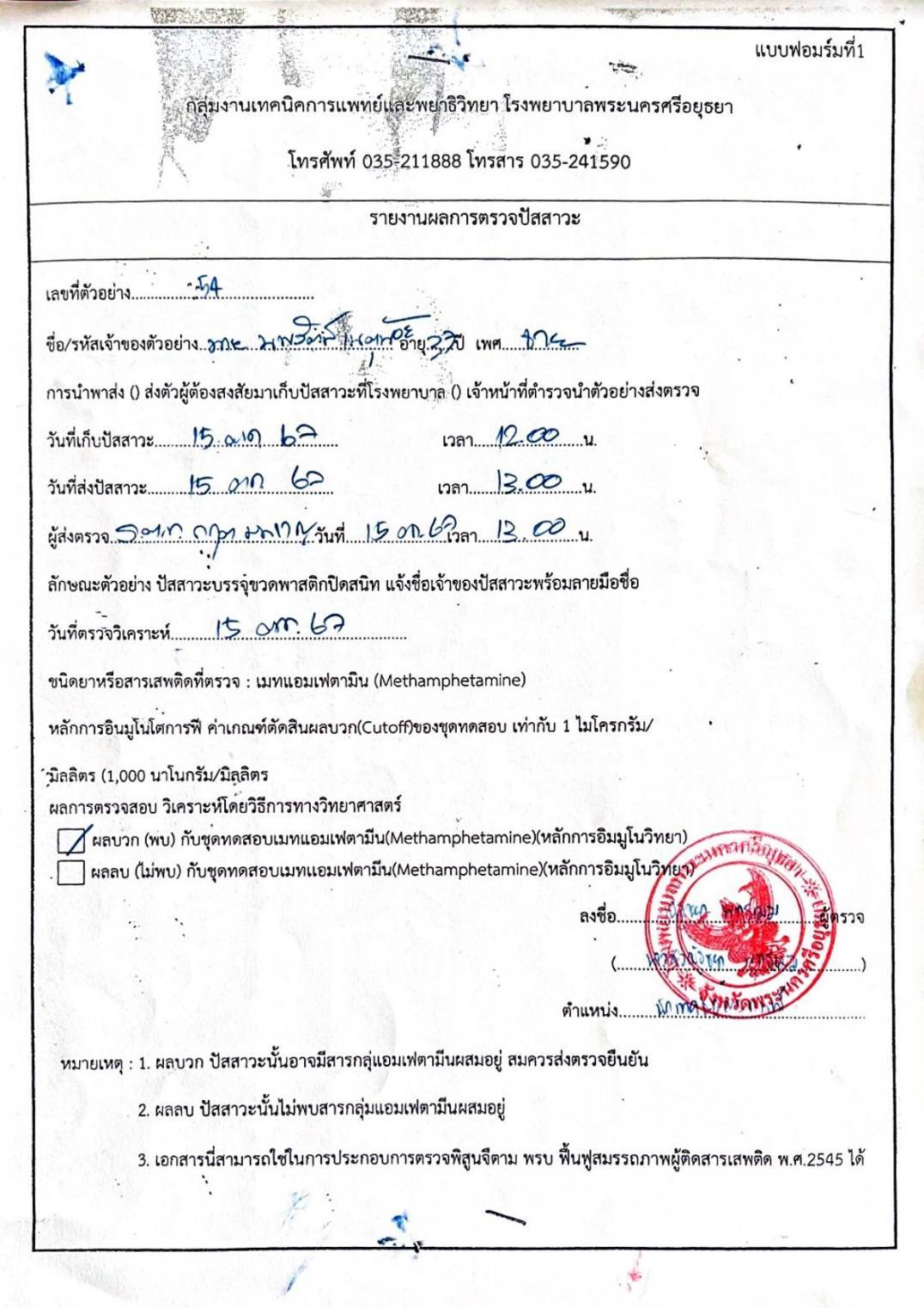 สถานที่จับกุม:บริเวณลานจอดรถภายในปั๊มน้ำมันบางจากถนนโรจนะหมายเลข ๓๐๙ หมู่ ๔ ตำบลคานหาม อ.อุทัย จ.พระนครศรีอยุธยา