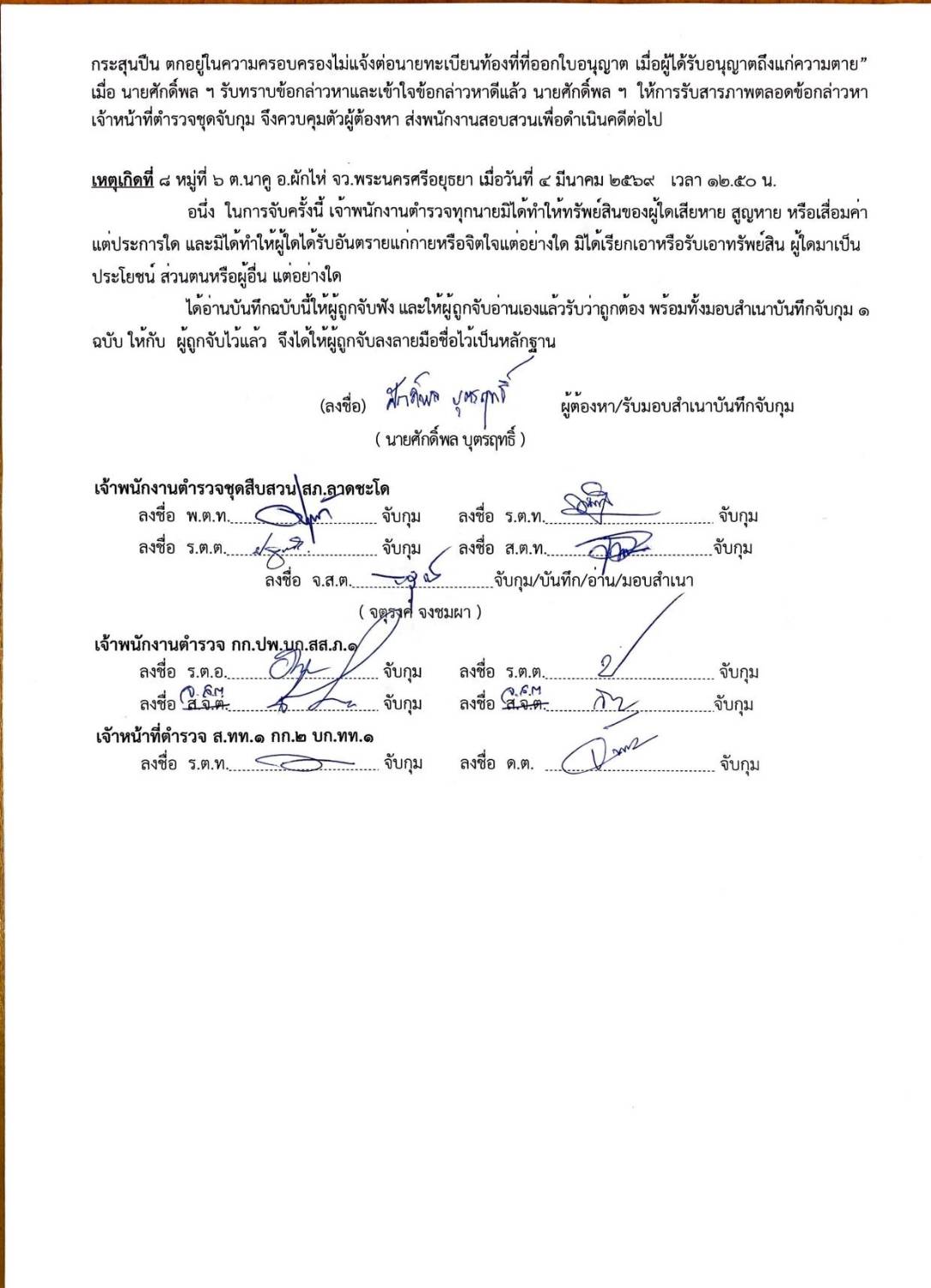 สถานที่จับกุม : 8 หมู่ที่ 6 ตำบลนาคู อำเภอผักไห่ จังหวัดพระนครศรีอยุธยา โดยนำตัวส่ง : ส่ง พงส. สภ.ลาดชะโด เพื่อดำเนินการตามกฏหมายต่อไป
