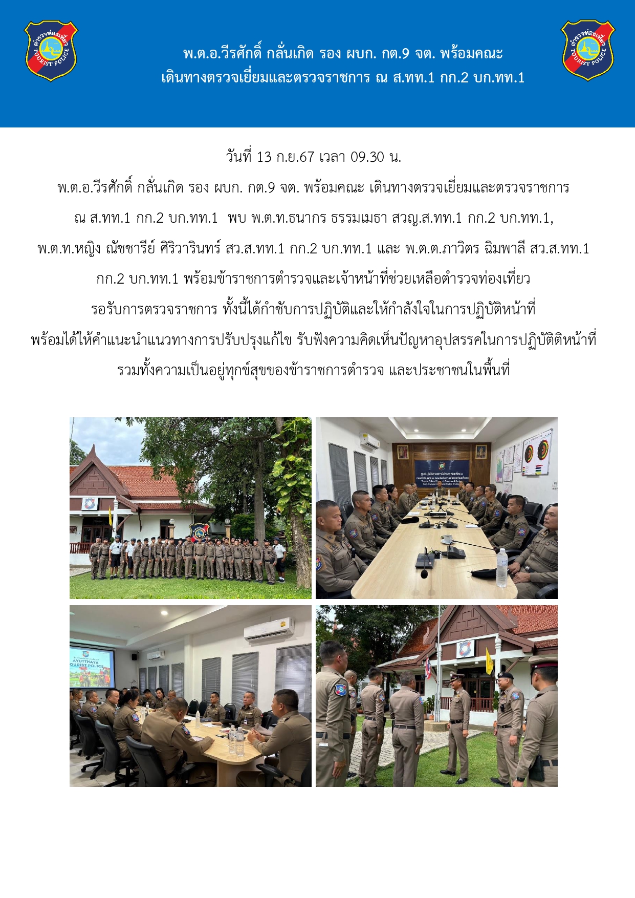 ตรวจเยี่ยมและตรวจราชการ 12 กันยายน 2567 โดย ayutthaya121 / ข่าวภารกิจผู้บังคับบัญชา จำนวนผู้เยี่ยมชมเว็บไซต์ 5