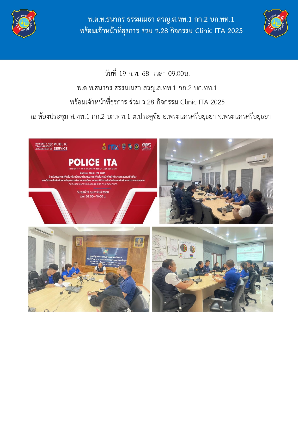 พ.ต.ท.ธนากร ธรรมเมธา สวญ.ส.ทท.1 กก.2 บก.ทท.1 พร้อมเจ้าหน้าที่ธุรการ ร่วม ว.28 กิจกรรม Clinic ITA 2025