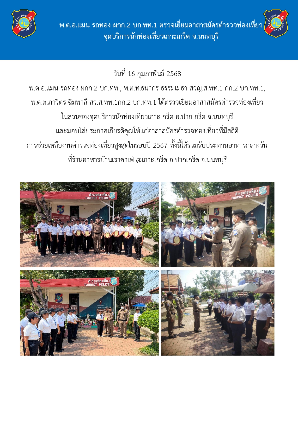 พ.ต.อ.แมน รถทอง ผกก.2 บก.ทท.1 ออกประชาสัมพันธ์ แอปพลิเคชัน Thai tourist police (TTP) และได้อำนวยความสะดวกพร้อมรักษาความปลอดภัยเนื่องในเทศกาลวันวาเลนไทน์