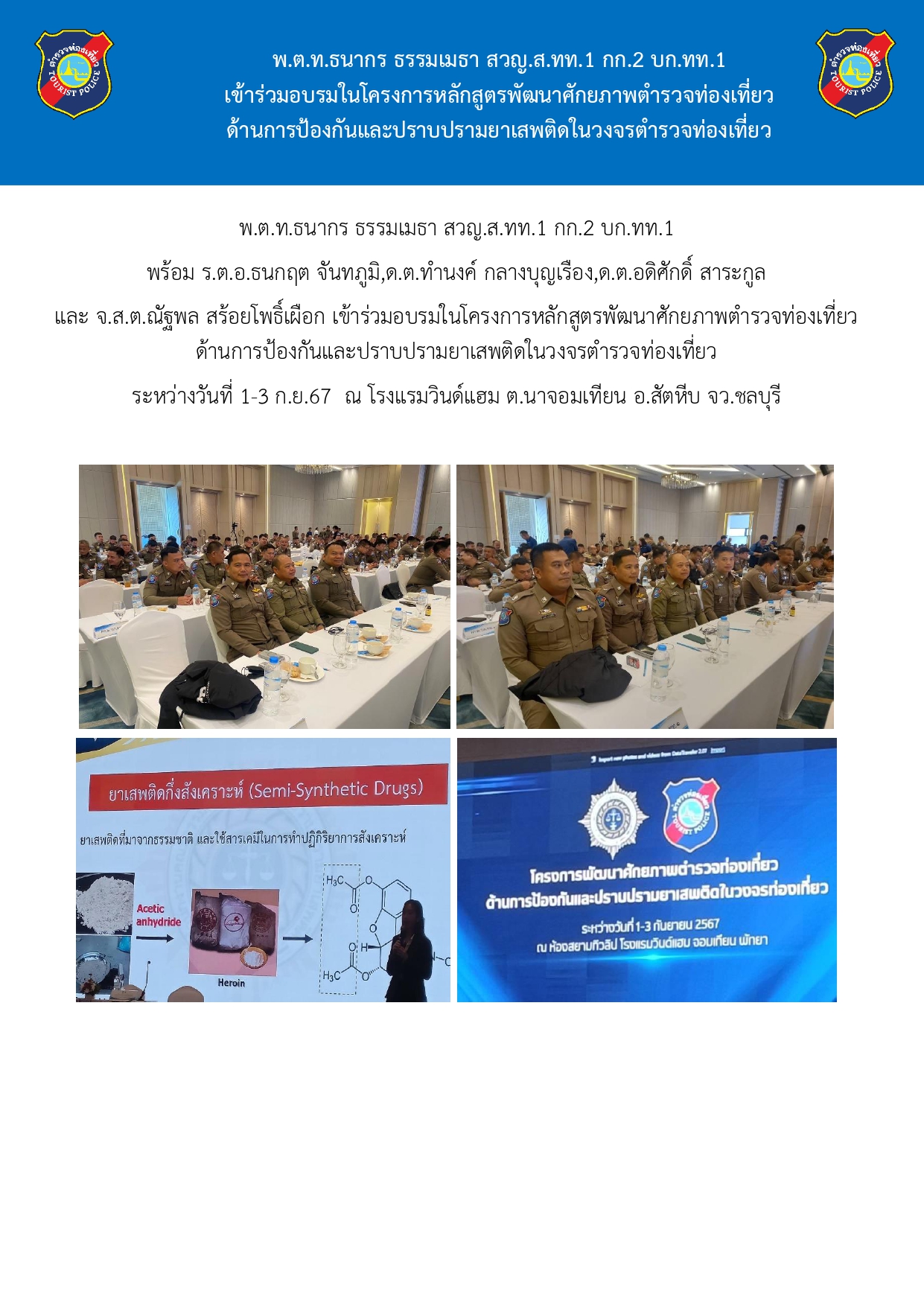 ร่วมอบรมในโครงการหลักสูตรพัฒนาศักยภาพตำรวจท่องเที่ยว
