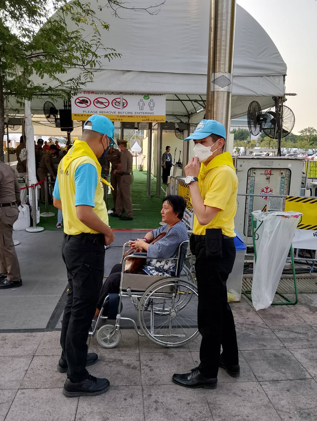 จ.ส.ต.ฐาปพล โพธิรัชต์ พร้อมเจ้าหน้าที่ตำรวจอาสาจังหวัดนนทบุรี ปฏิบัติหน้าที่ ว.4 จิตอาสาอำนวยความสะดวกให้แก่ประชาชนที่เข้าร่วมสักการะพระบรมสารีริกธาตุ (พระเขี้ยวแก้ว) ณ พื้นที่มณฑลท้องสนามหลวง