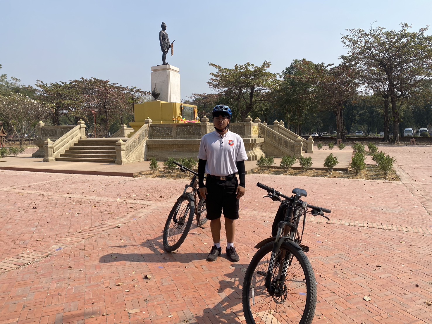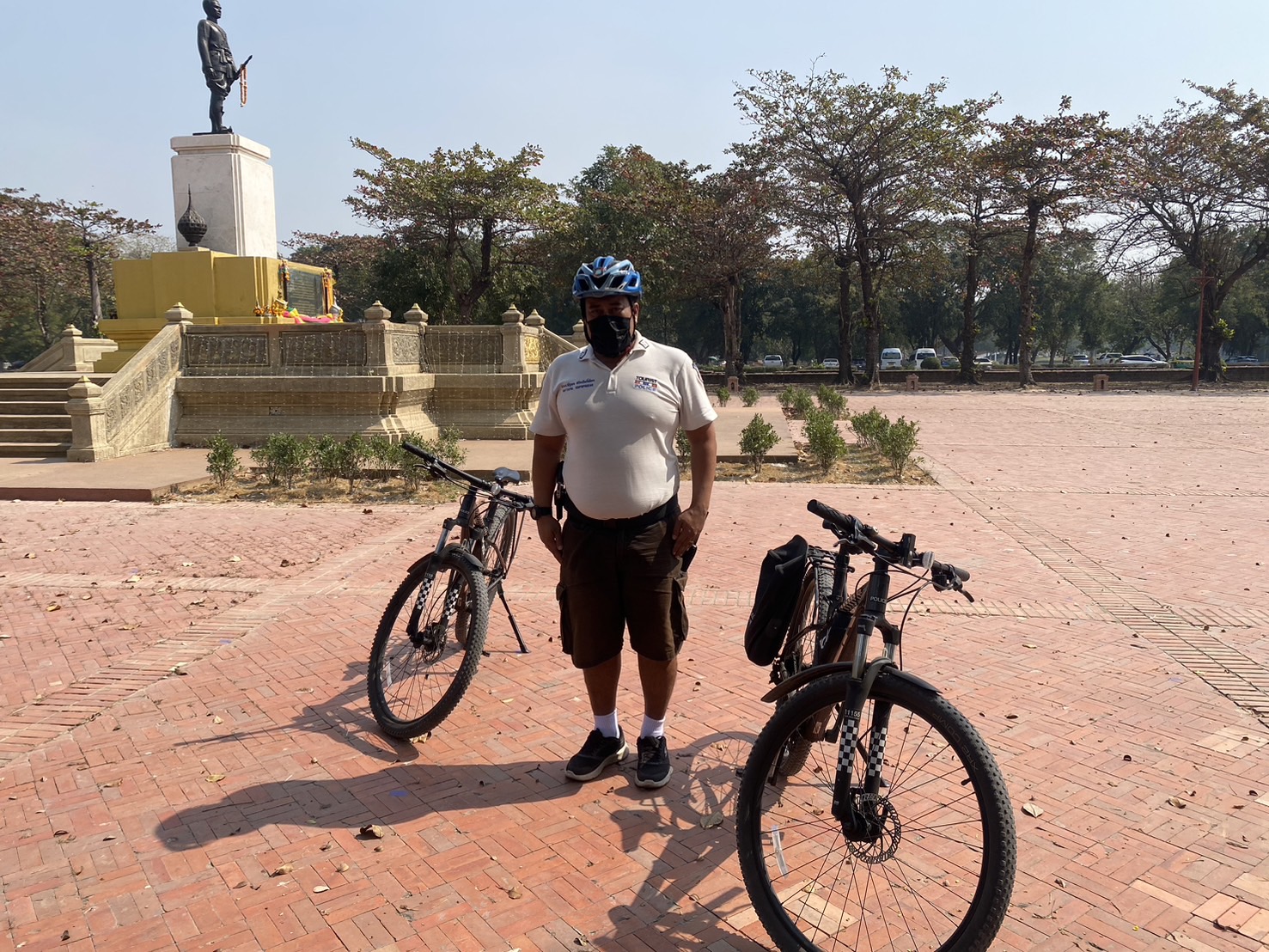 ด.ต.กฤษฎา คุณทะวงษ์ , จ.ส.ต.ณัฐพล สร้อยโพธิ์เผือก พร้อม นักศึกษาฝึกประสบการณ์ ปฏิบัติหน้าที่สายตรวจจักรยาน ว.4