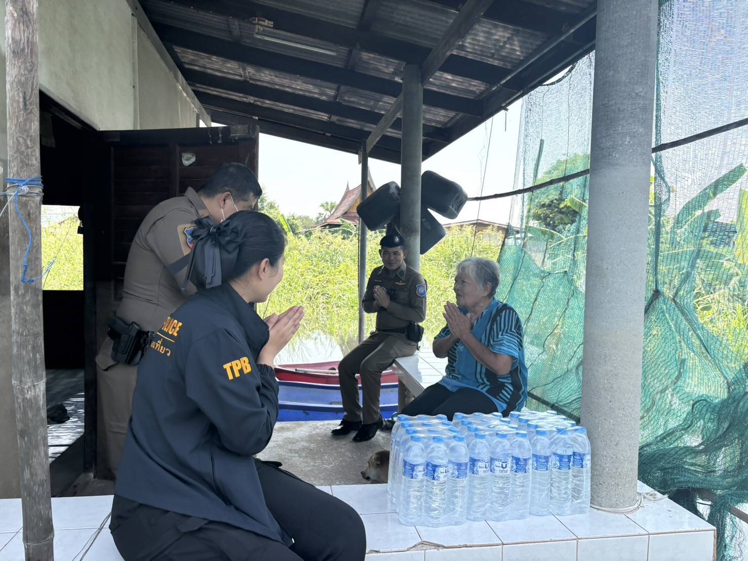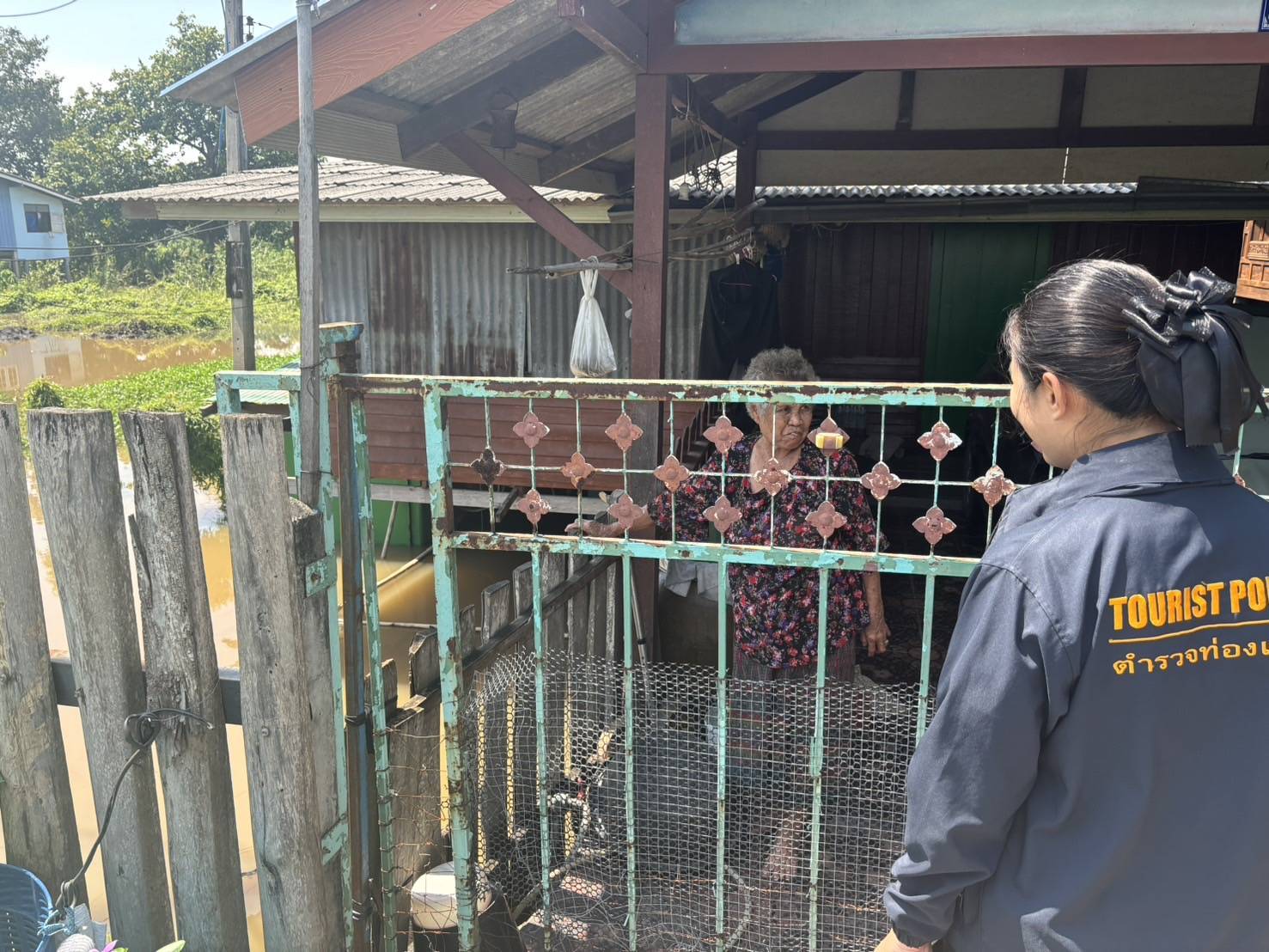 ตำรวจท่องเที่ยวพระนครศรีอยุธยา จึงได้เข้าไปพูดคุยสอบถามความเป็นอยู่กับผู้สูงอายุที่อยู่บ้านคนเดียว และมอบน้ำดื่ม/อาหารแห้ง ให้กับประชาชนในชุมชนที่ได้รับผลกระทบจากน้ำท่วม และประชาสัมพันธ์ให้ชาวบ้านที่อาศัยอยู่บริเวณริมแม่น้ำ รวมถึงร้านค้า ร้านอาหาร ขนย้ายสิ่งของมีค่าขึ้นที่สูง นำยานพาหนะ รถจักรยานยนต์ และรถยนต์ ขึ้นไปจอดบนไหล่ทางถนนเพื่อหลีกเลี่ยงอุทกภัย