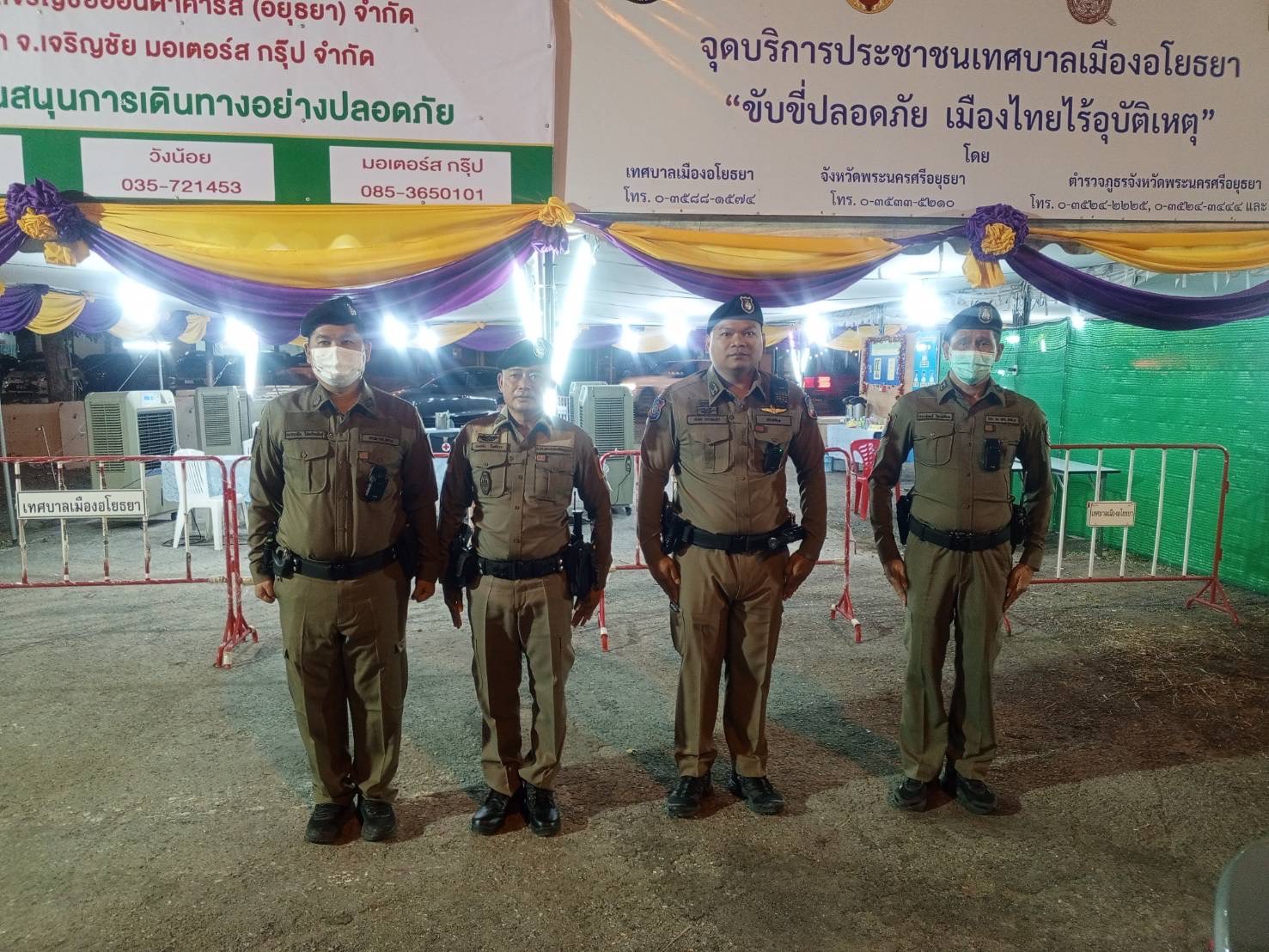 พ.ต.ท.ธนากร ธรรมเมธา สวญ.ส.ทท.1 กก.2 บก.ทท.1 พร้อมกำลังเจ้าหน้าที่สายตรวจรถยนต์ ร่วมกับ สภ.พระนครศรีอยุธยา ว.10 จุดบริการประชาชนเทศบาลนครอโยธยา เพื่ออำนวยความสะดวกให้แก่ประชาชนที่เดินทางกลับภูมิลำเนา ในเทศกาลปีใหม่ประจำปี 2568 ตามมาตรการป้องกันและลดอุบัติเหตุทางถนนช่วง 10 วันอันตราย ระหว่างวันที่ 28 ธันวาคม 2567 – 6 มกราคม 2568