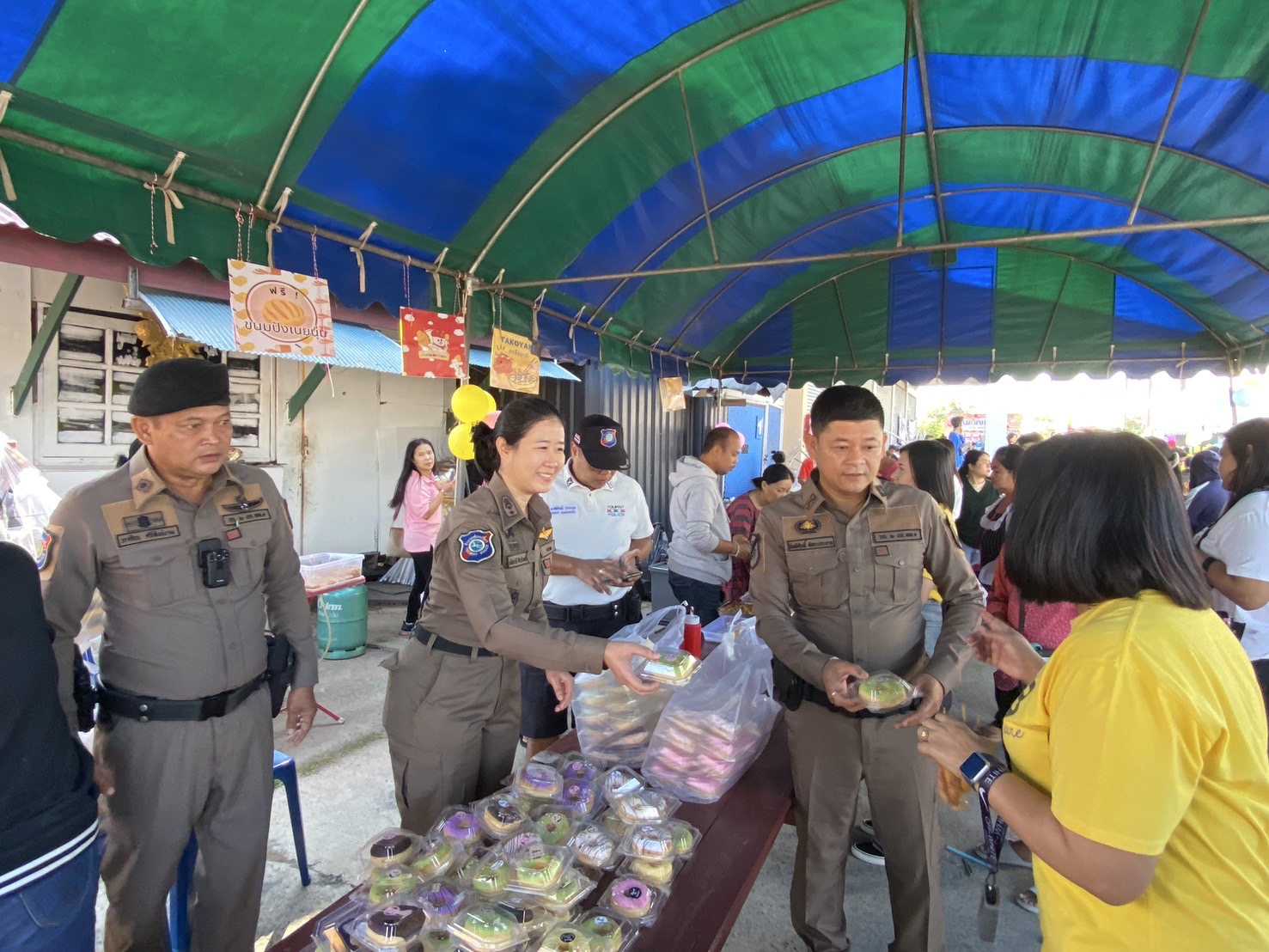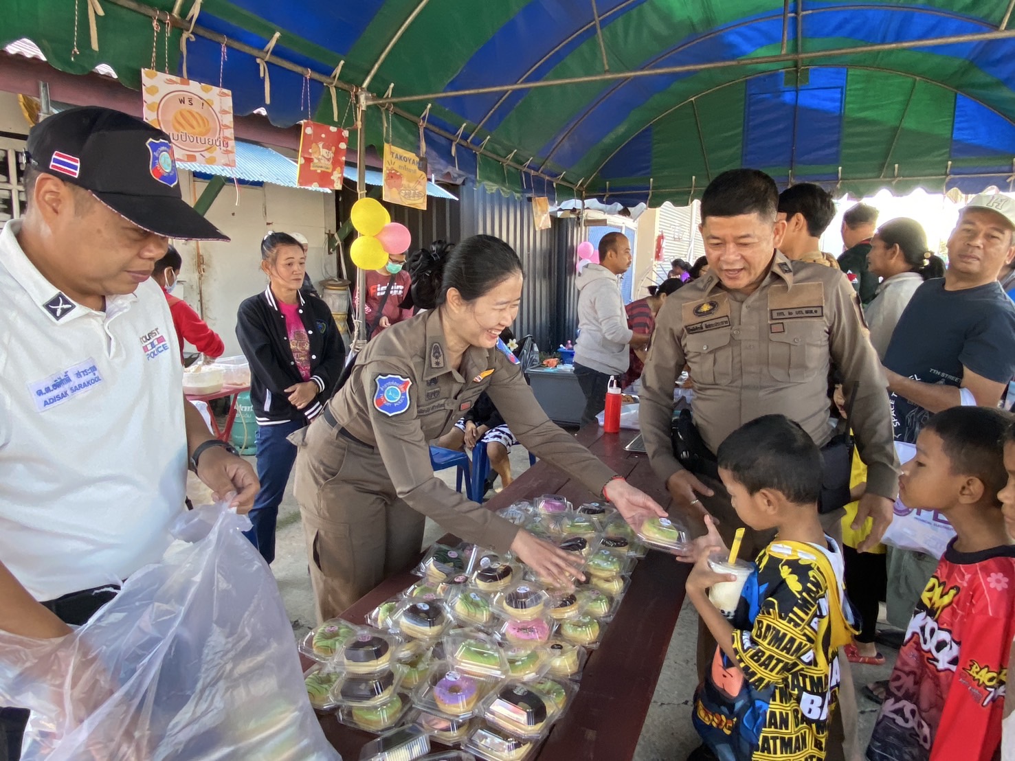 พ.ต.ท.หญิง ณัชชารีย์ ศิริวารินทร์ สว.ส.ทท.1 กก.2 บก.ทท.1 พร้อมกำลังเจ้าหน้าที่สายตรวจและเจ้าหน้าที่ฝ่ายอำนวยการ ร่วมงาน “วันเด็กแห่งชาติ” สนับสนุนของรางวัลจับสลาก และแจกขนมโดนัทแก่เด็กๆที่มาร่วมสนุกภายในงานฯ