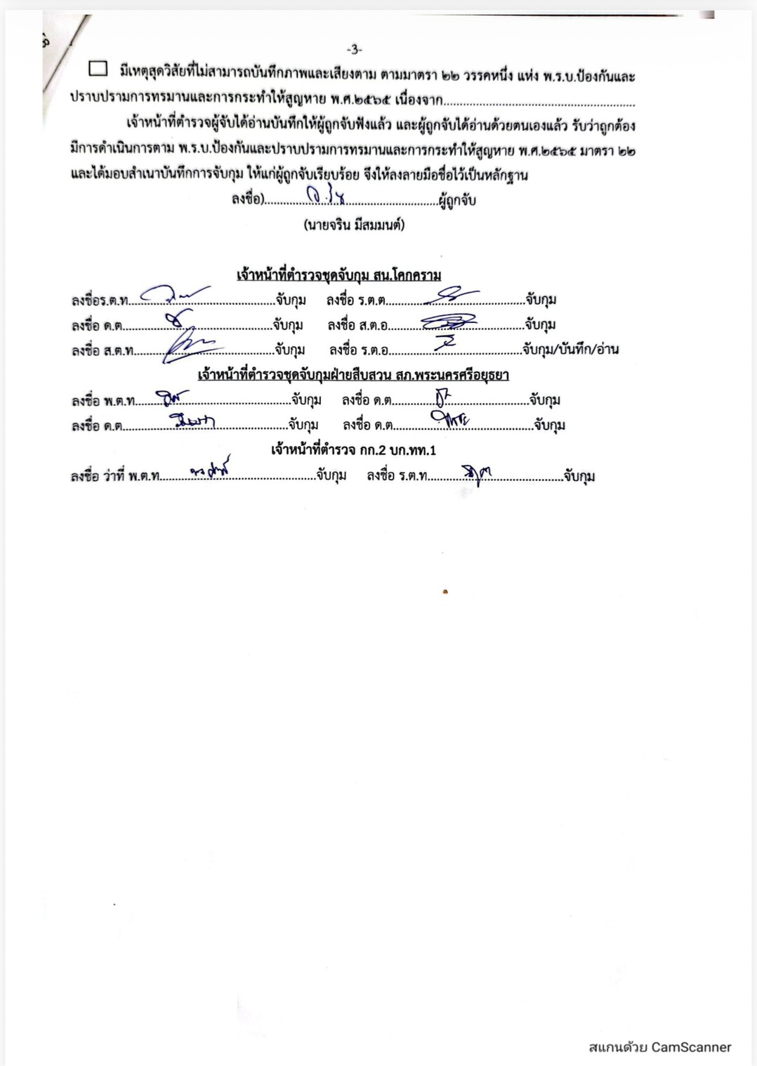 พ.ต.อ.มิลิน เพียรช่าง ผกก.2 บก.ทท.1, พ.ต.ท.ศุภรัตน์ มีปรีชา รอง ผกก.2 บก.ทท.1, พ.ต.ท.พิชญะ เขียวเปลื้อง รอง ผกก.2 บก.ทท.1, พ.ต.ท.ศุภรภัจ ศิลปศร สวญ.ส.ทท.1 กก.2 บก.ทท.1, พ.ต.ท.หญิงณัชชารีย์ ศิริวารินทร์ สว.ส.ทท.1 กก.2 บก.ทท.1 และ พ.ต.ท.พงษ์ศักดิ์ แสงมหาชัย สว.ส.ทท.1 กก.2 บก.ทท.1 สั่งการให้เจ้าหน้าที่ตำรวจ ส.ทท.1 กก.2 บก.ทท.1 ร่วมกับเจ้าหน้าที่ตำรวจฝ่ายสืบสวน สน. โคกคราม,ฝ่ายสืบสวนสภ. พระนครศรีอยุธยาและ เจ้าหน้าที่ตำรวจ กก.2 บก.ทท.1 ร่วมกันจับกุม : จำนวน 1 ราย 1 คน ดังนี้