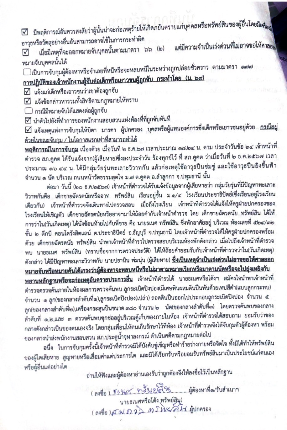 โดยนำตัวส่ง : ส่งพนักงานสอบสวน สภ.ประตูน้ำจุฬาลงกรณ์ เพื่อดำเนินคดีตามกฎหมายต่อไป