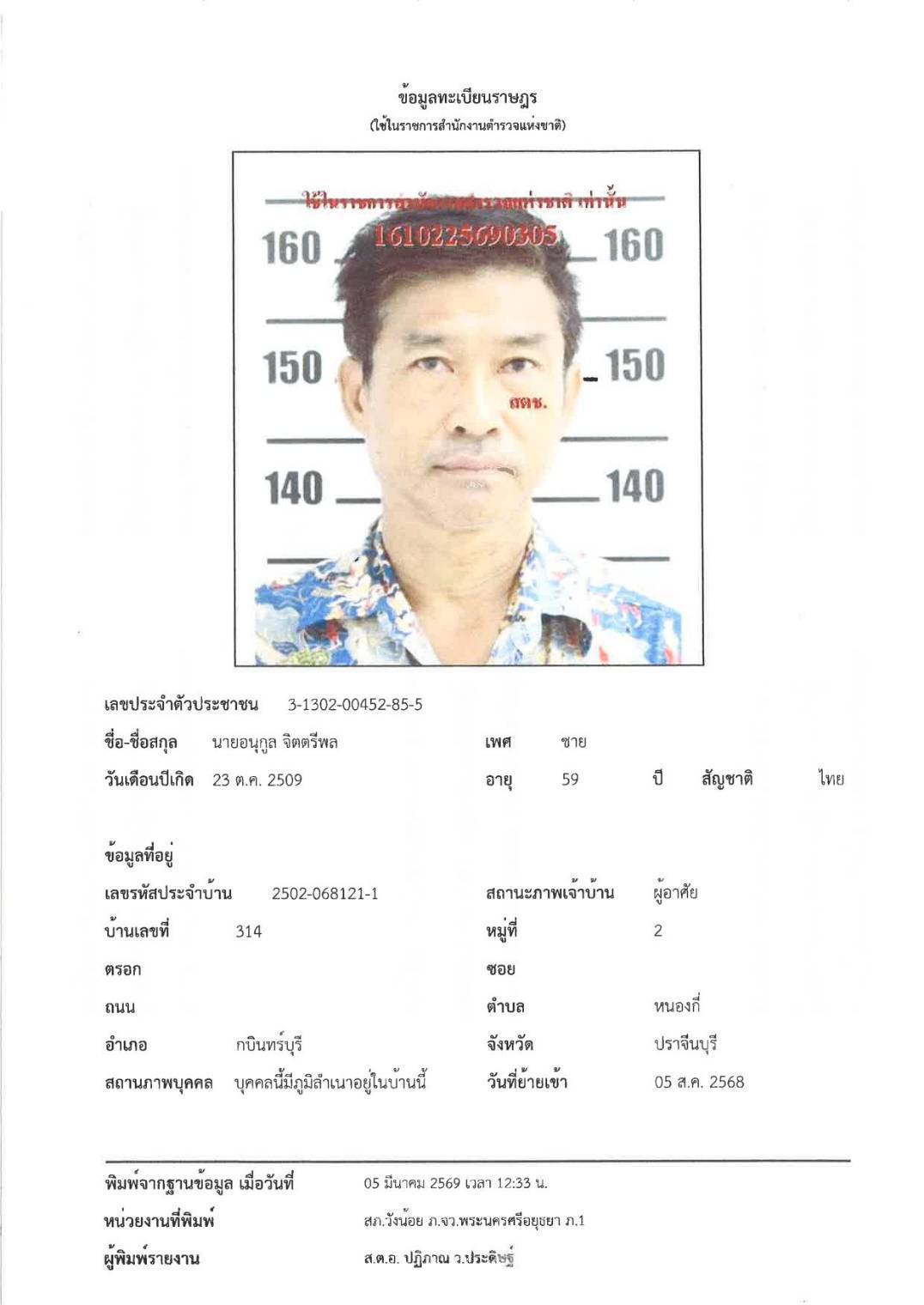 วันที่ ( 6 มีนาคม 2569) เวลาประมาน 13.00 น. พ.ต.อ.มิลิน เพียรช่าง ผกก.2 บก.ทท.1, พ.ต.ท.ศุภรัตน์ มีปร